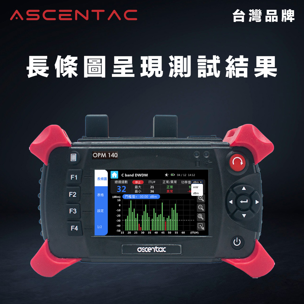 Ascentac OPM140 系列為專用於 DWDM 系統的手持式光功率計,主要用來偵測絕對光功率,次要用於測試 DWDM 峰值波長 (Peak Wavelength,PW)。