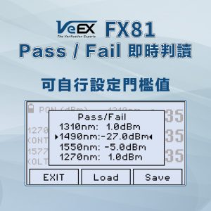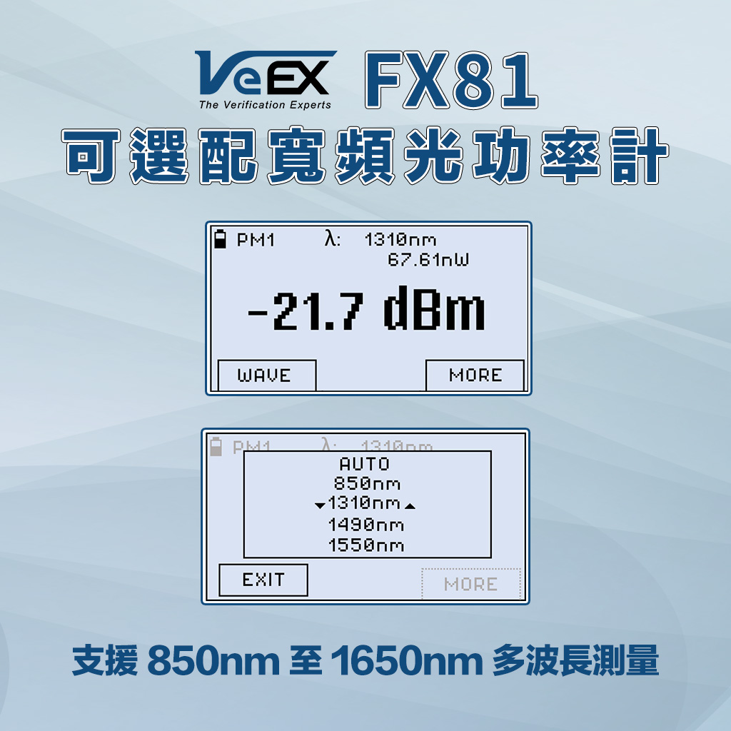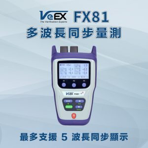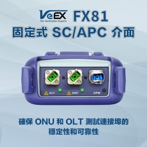 VeEX FX81 光功率計適用於多種 PON 光纖網路的安裝、開通服務與故障排除等,包括 B/GPON、XG(S)-PON、25G PON、EPON 與 10G-EPON。直通設計可同步量測上下行多路訊號,適用於 ONU/ONT (用戶端設備) 驗證,同時也支援非直通/端接模式的 OLT (局端設備) 測試與驗證。